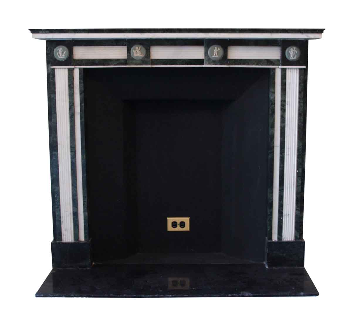 This salvaged Waldorf Astoria green and white Regency marble mantel classicism inspired by ancient Greece and Egypt with edgy, simple lines, a style adopted during the opulent Art Deco era.