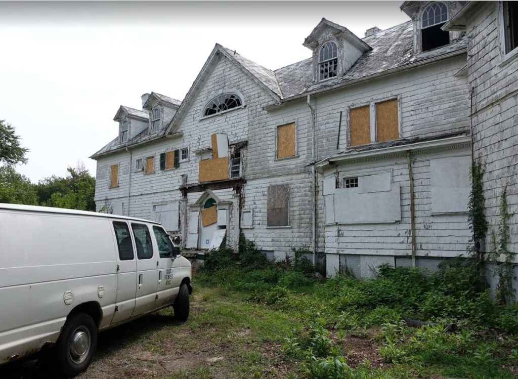 This shabby looking dilapidated mansion recently was slated for demolition. Of course, the salvage team at Olde Good Things was on the scene to see what treasures they could uncover before its demise.