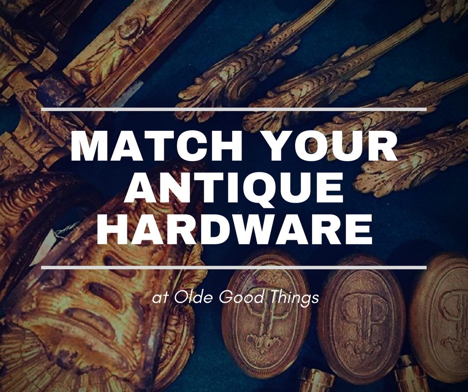 The good news is, that Olde Good Things carries an immense selection of antique hardware, and we always have the customer in mind. We want to match your custom style with the perfect element for the piece’s age, color, and texture. And, if we can’t match the old hardware, we will help you find something better in our extensive treasure trove.