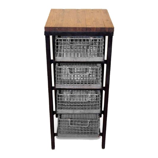 4. Four Tier Galvanized Basket Stand – A reclaimed industrial wood top finishes this handy four-tier basket storage stand. Great for kitchens, baths, or as a side table.